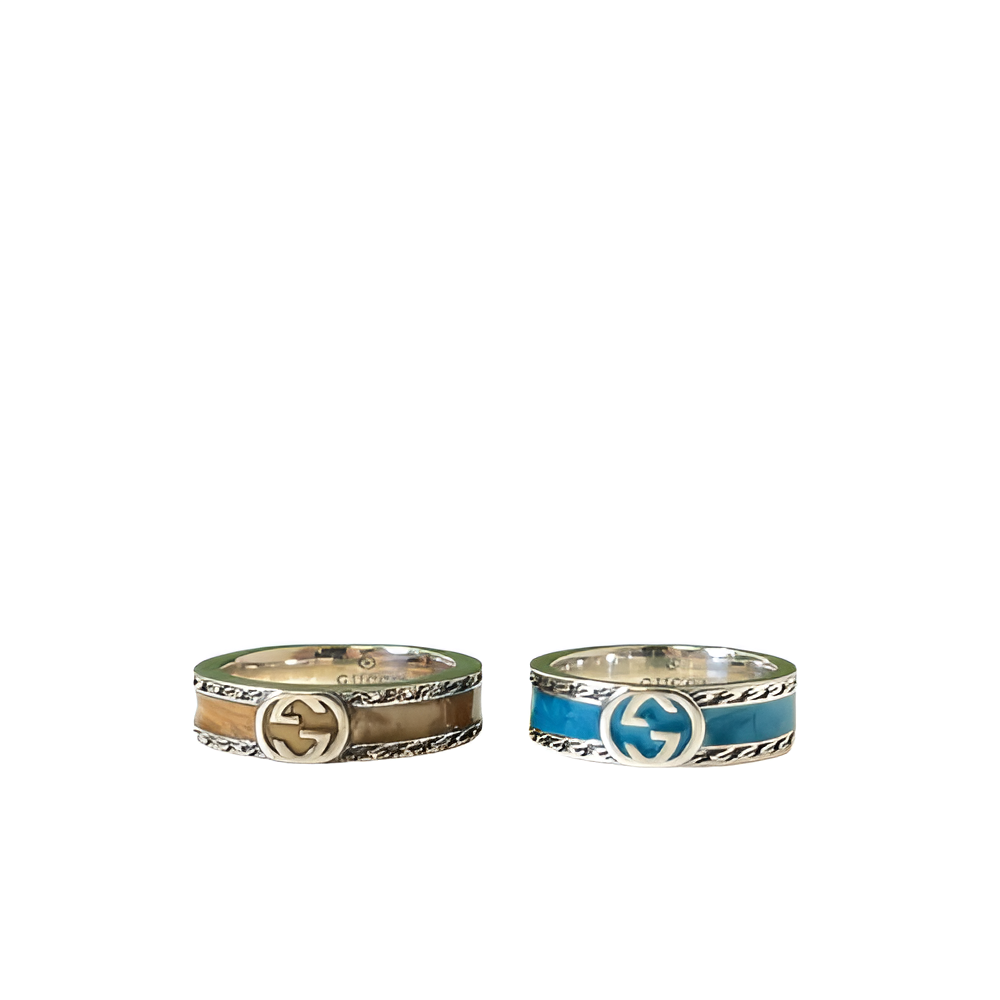 Add a splash of color and luxury to your collection with the Gucci Double Enamel GG Rings Set, designed for men who appreciate bold design and high-end fashion. This set features two stunning rings with Gucci’s signature GG logo in a silver-tone band, accented by vibrant blue and beige enamel detailing. The intricate craftsmanship and bright enamel make these rings perfect for both casual and formal wear.