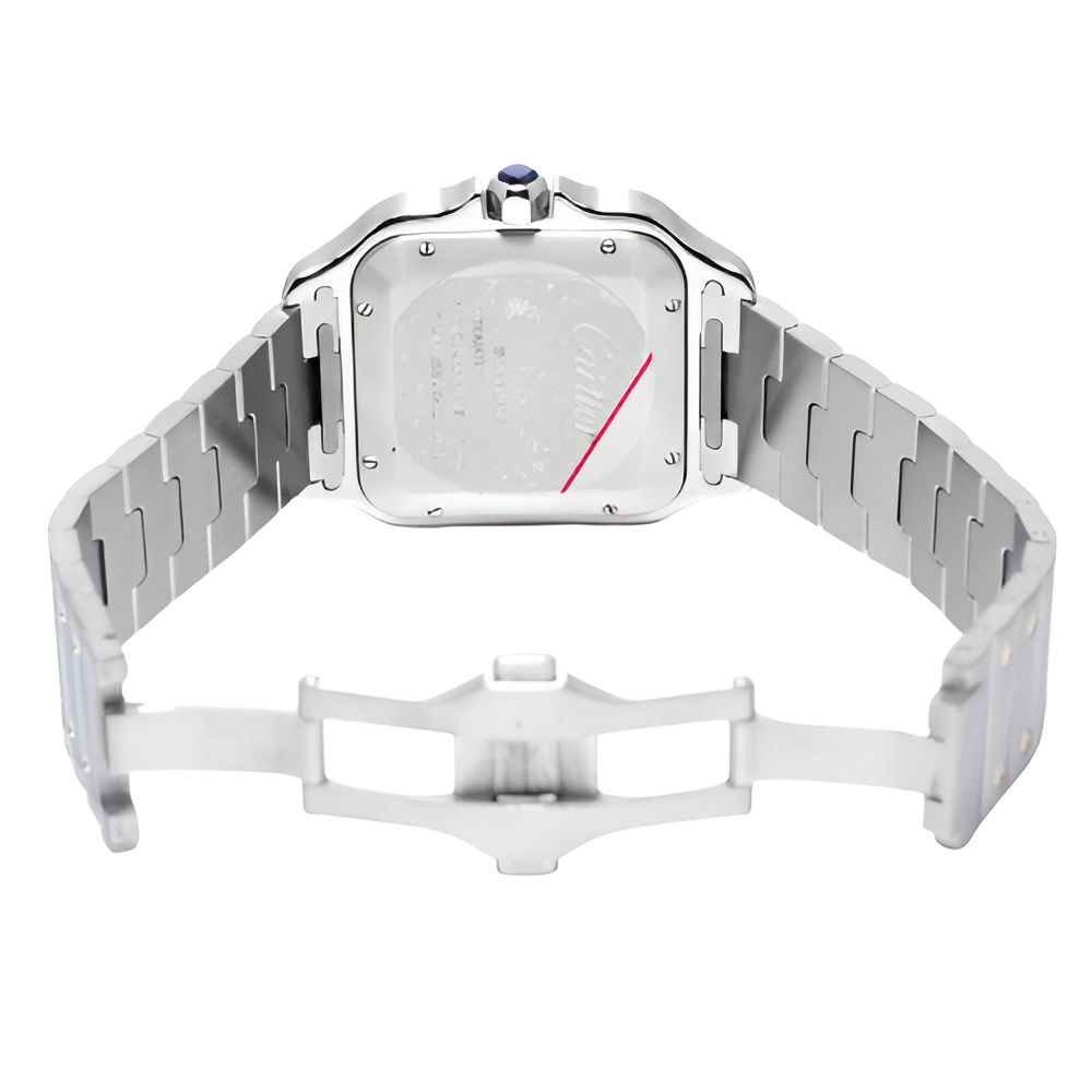 The Cartier Santos de Cartier Men's Watch is a symbol of sophistication and craftsmanship. This two-tone timepiece, combining stainless steel and 18k yellow gold, features a classic square bezel with exposed screws—true to Cartier's timeless design. The white dial with Roman numerals and blued steel hands makes reading the time a visually delightful experience. The two-tone metal bracelet adds a contemporary touch, perfect for both formal and casual settings.