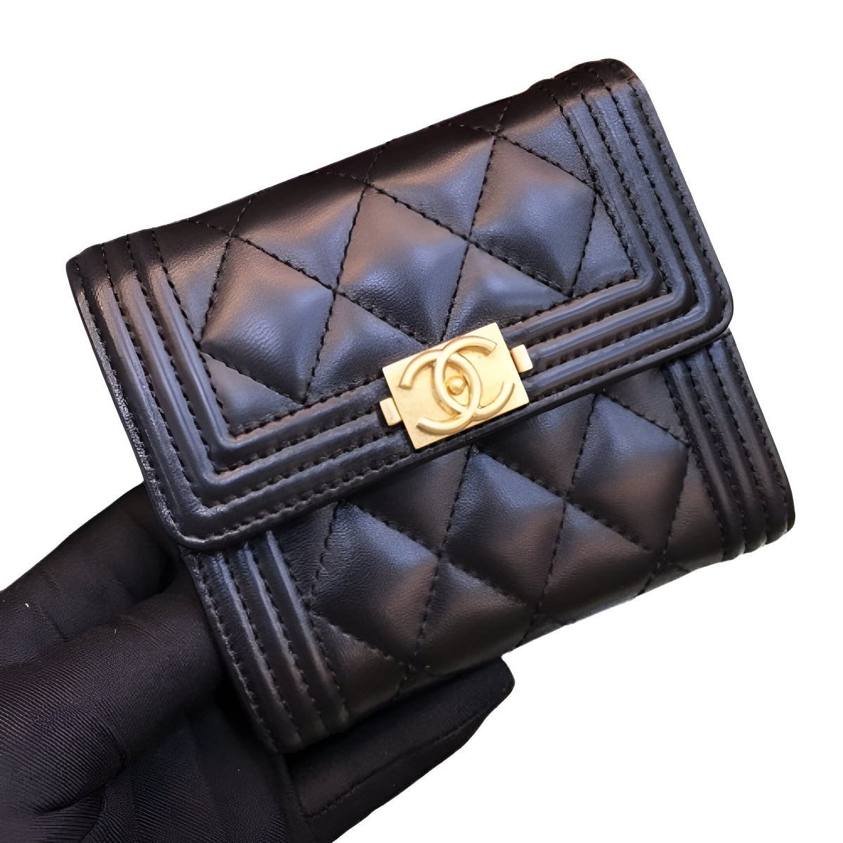 The 👜 Chanel-Inspired Quilted Mini Flap Wallet is a compact and stylish accessory, crafted from premium synthetic leather with a classic quilted design. Perfect for carrying your essentials, this wallet features a gold-tone flap closure and comes with complete box packaging. Delivery takes 10 to 14 days.