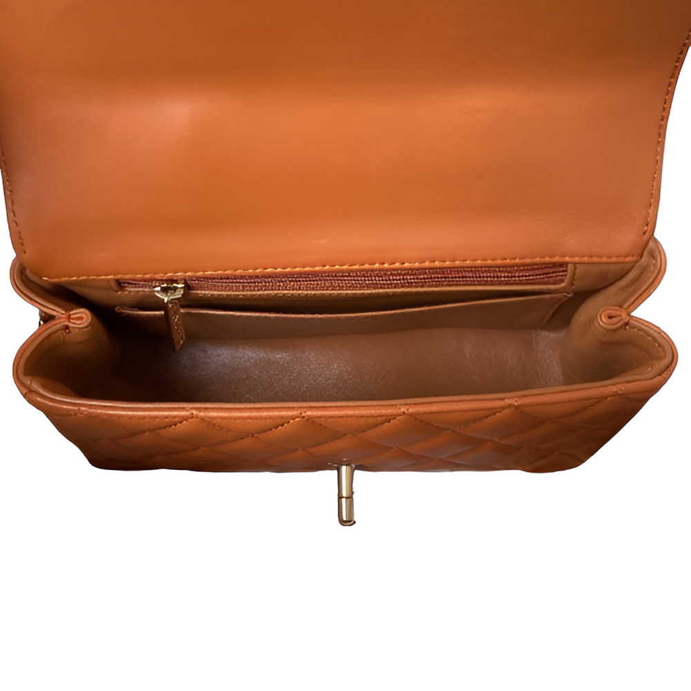 The 👜 Chanel-Inspired Tan Quilted Flap Bag with Chain brings sophistication to any outfit. Crafted from premium synthetic leather, this bag features a warm tan color with a classic quilted design and gold-tone chain. Perfect for both casual and formal wear, it adds a touch of luxury to your wardrobe. Comes with complete box packaging. Delivery takes 10 to 14 days.