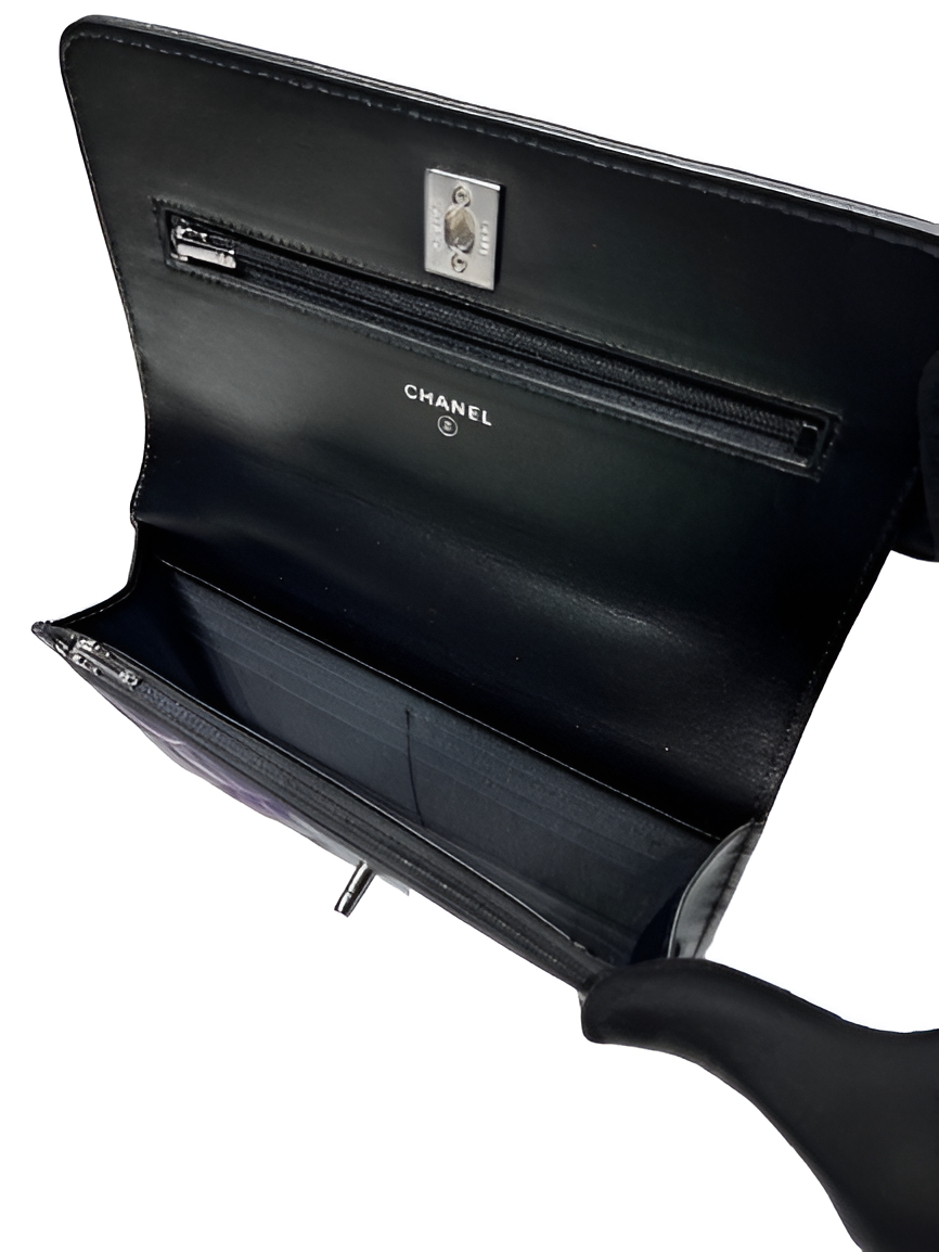 Stay effortlessly chic with the CHANEL Quilted Black Mini Flap Bag. This elegant bag features CHANEL's signature quilted leather design, paired with sleek silver-tone hardware and a chain strap. Compact yet stylish, this mini bag is perfect for holding your essentials, making it an ideal choice for both day and evening wear.