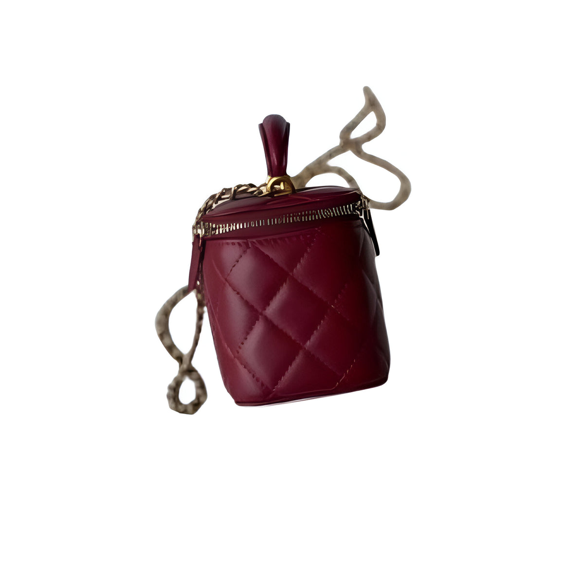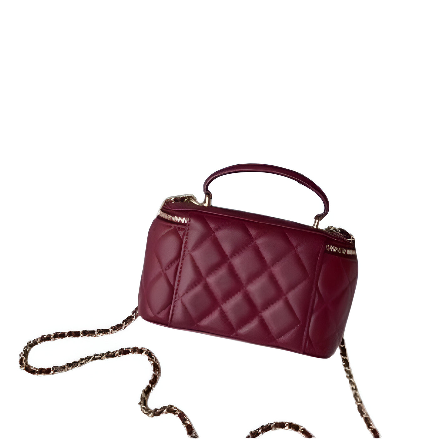 Make a bold statement with the CHANEL Quilted Maroon Camera Bag. Crafted from luxurious quilted leather, this rich maroon bag offers both style and practicality. With its compact design, gold-tone hardware, and iconic CHANEL logo, this bag is perfect for carrying your essentials with class. The adjustable chain strap allows for versatile wear, whether it's over the shoulder or crossbody.