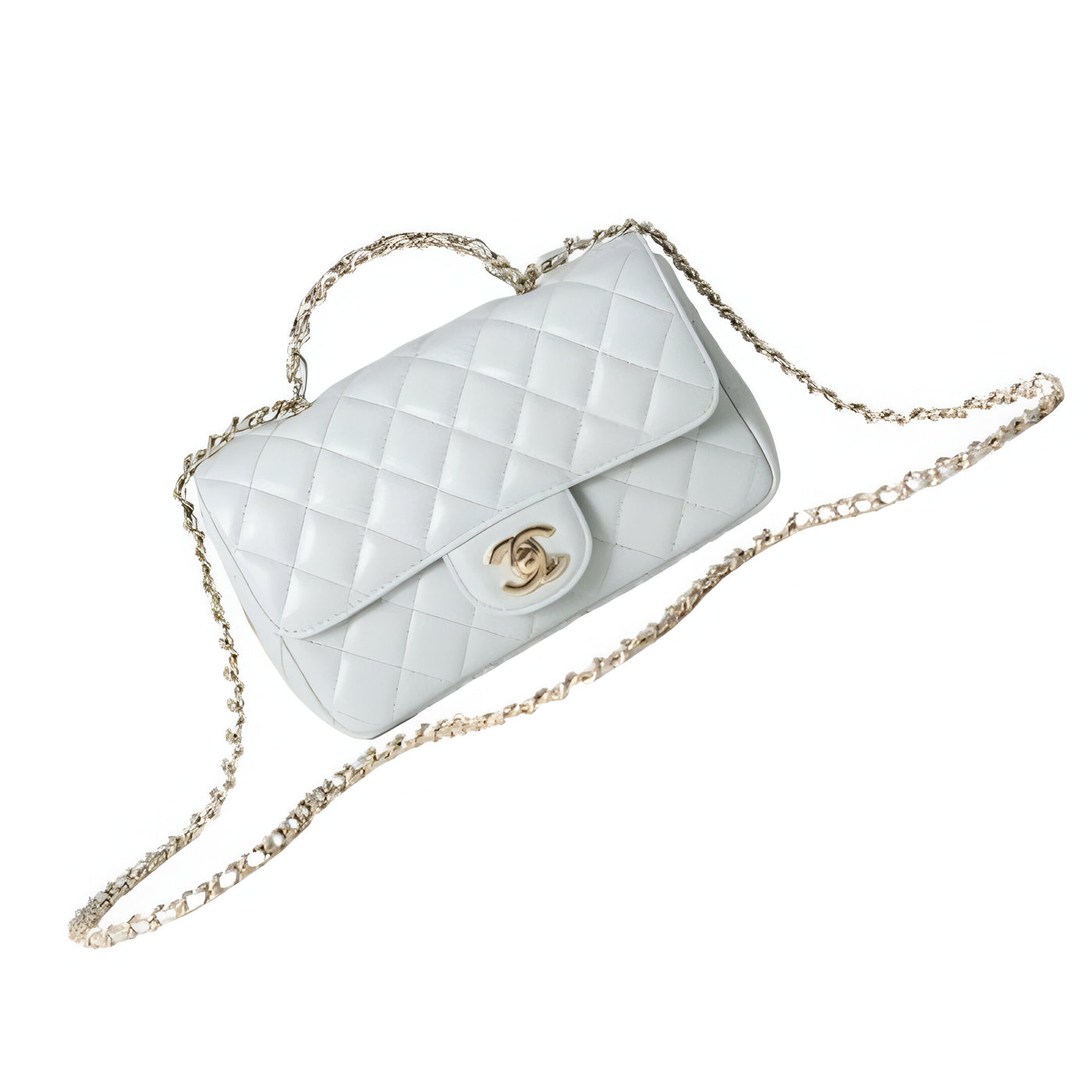 Make a chic addition to your collection with the CHANEL Quilted White Flap Bag. Featuring a luxurious quilted leather design and iconic gold-tone hardware, this elegant bag offers timeless style and versatility. With its adjustable chain strap and top handle, it’s perfect for both everyday wear and special occasions.