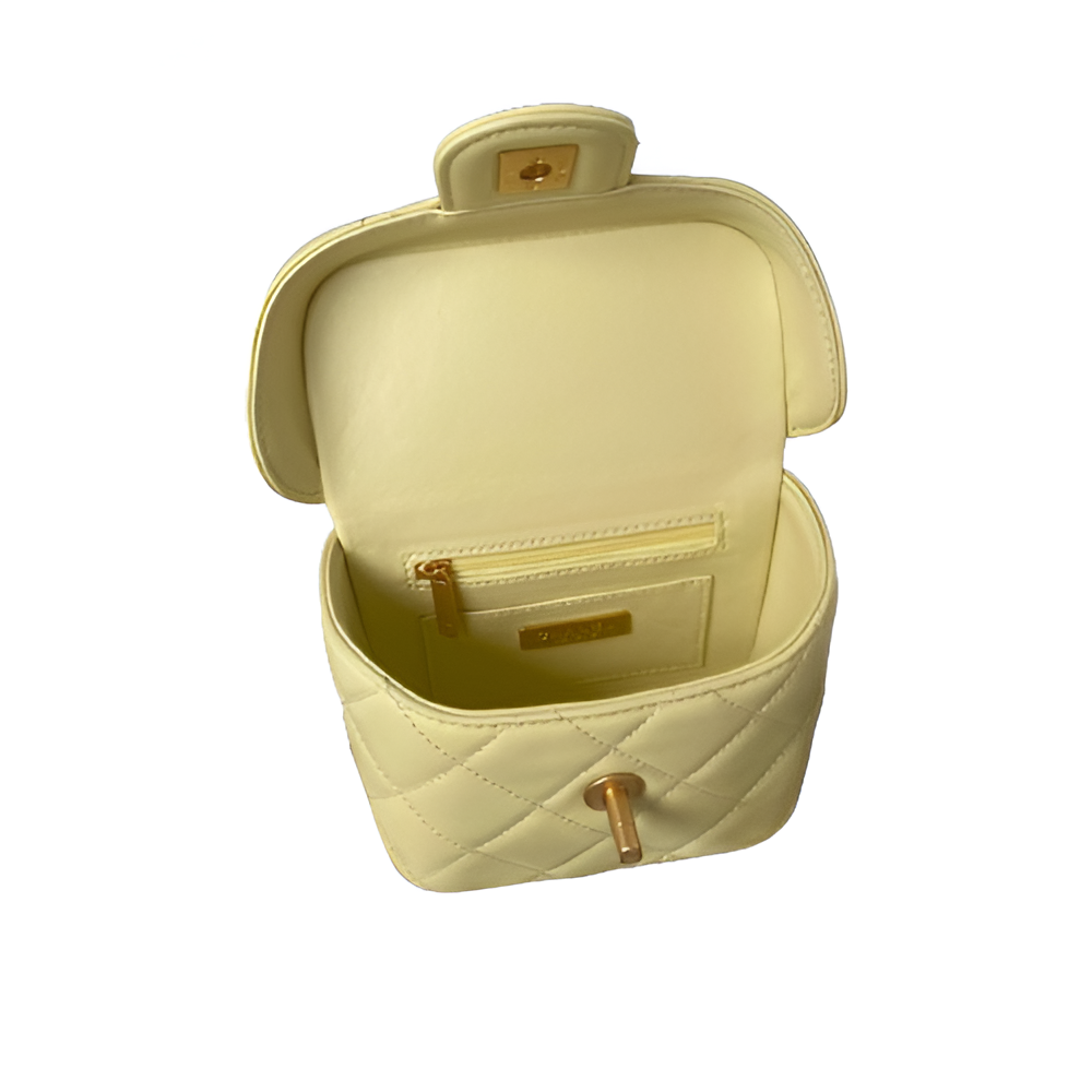 Brighten up your wardrobe with the CHANEL Quilted Yellow Mini Tote Bag. This beautifully crafted mini tote in a soft yellow tone features the signature CHANEL quilting, paired with a gold-tone chain strap and top handle. Compact yet spacious enough for your essentials, this bag is a versatile piece perfect for day-to-night looks.