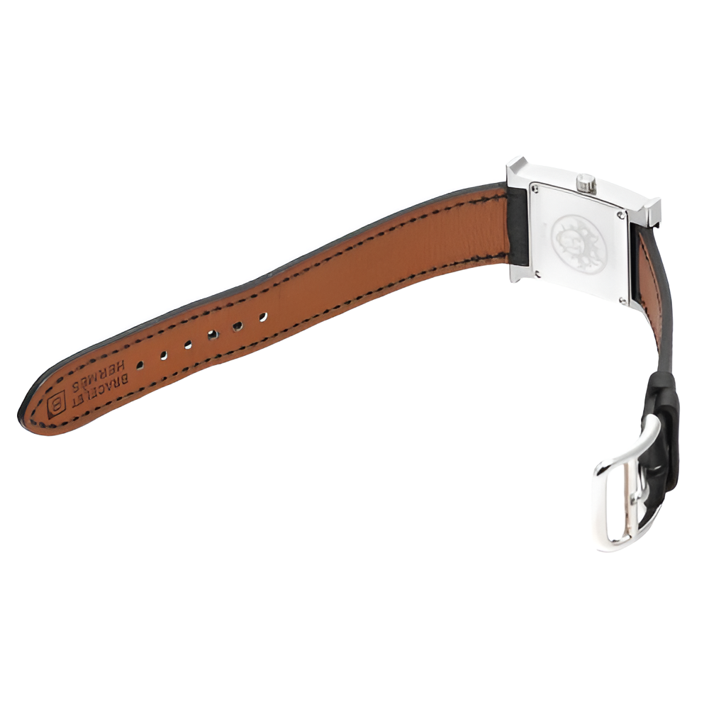 A sophisticated statement of luxury, this HERMÈS watch features a sleek black leather strap and a polished stainless steel case. The minimalistic dial, with clean lines and soft numerals, exudes elegance and precision. Whether for daily wear or special occasions, this timepiece offers both style and reliability.
