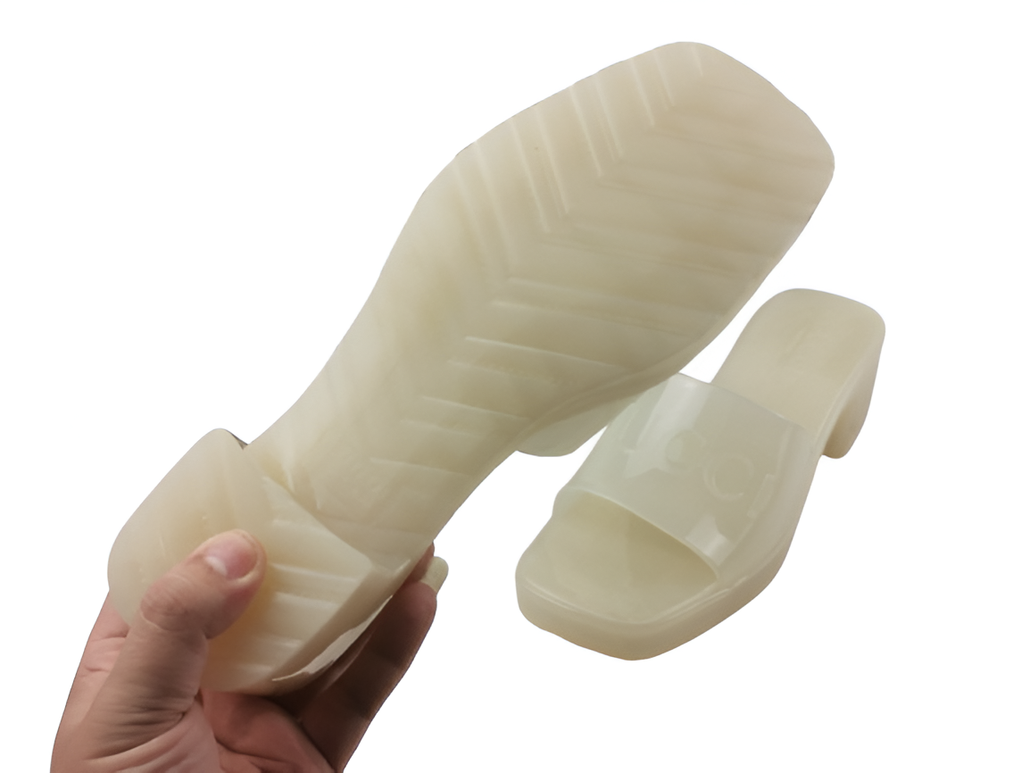 Step into modern minimalism with these Gucci Women's Ivory Transparent Slides. Featuring a sleek design crafted from high-quality transparent material, these slides are both chic and versatile. With an embossed Gucci logo on the strap, they provide a subtle touch of luxury, perfect for pairing with any casual or summer look.
