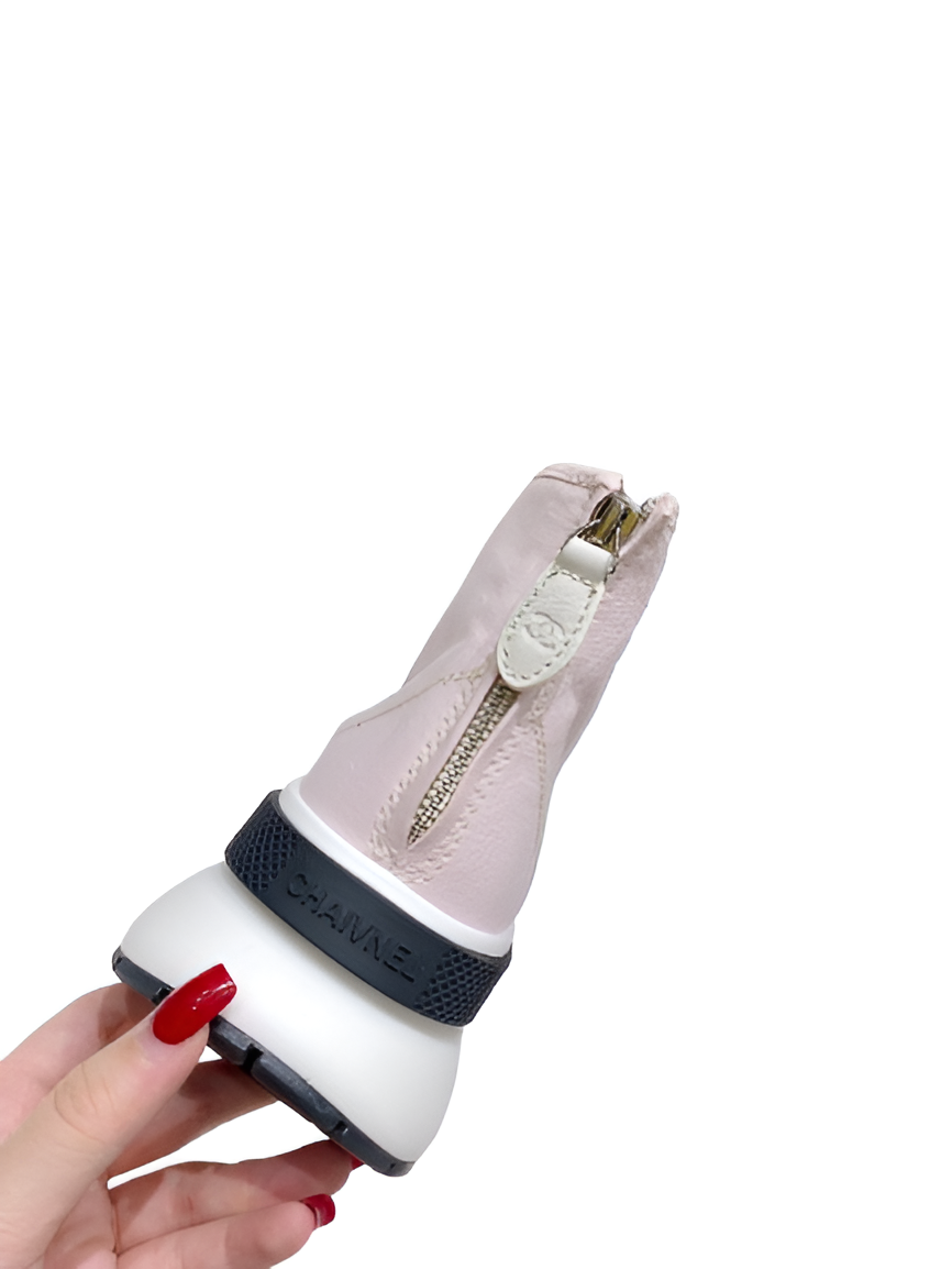 Step into elegance with these gorgeous CHANEL Pink High-Top Sneakers. Designed for those who value both comfort and fashion, these sneakers feature a soft pink hue that perfectly complements the iconic CHANEL design. Whether you're dressing up or down, these shoes make a bold and chic statement.