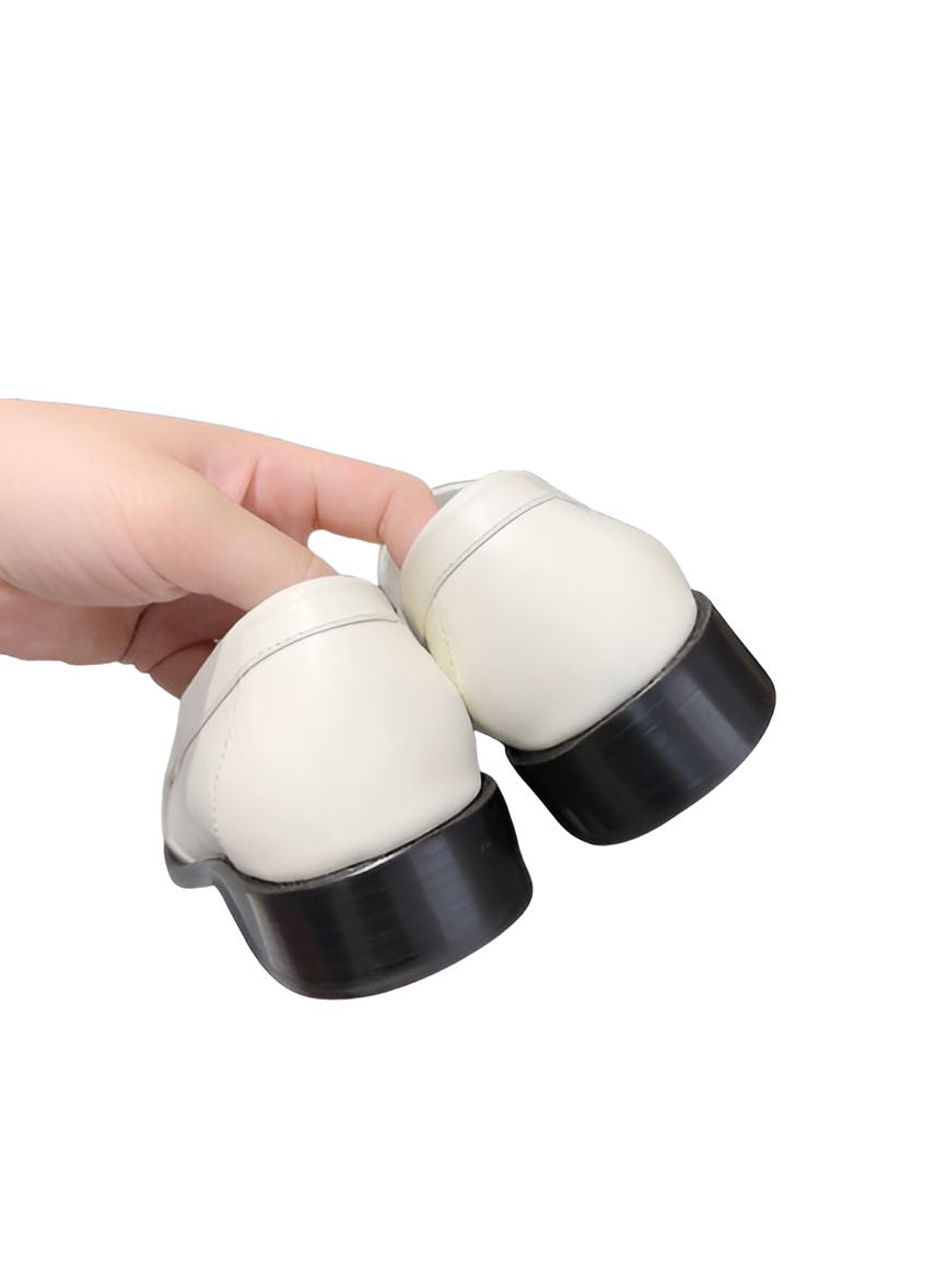 Step into luxury with the CHANEL Women's Gold CC Logo Loafers. Featuring a sleek and polished ivory leather finish, these loafers are adorned with the iconic gold-tone Chanel logo. Perfect for adding a sophisticated touch to both casual and formal outfits, these loafers provide timeless style and comfort.