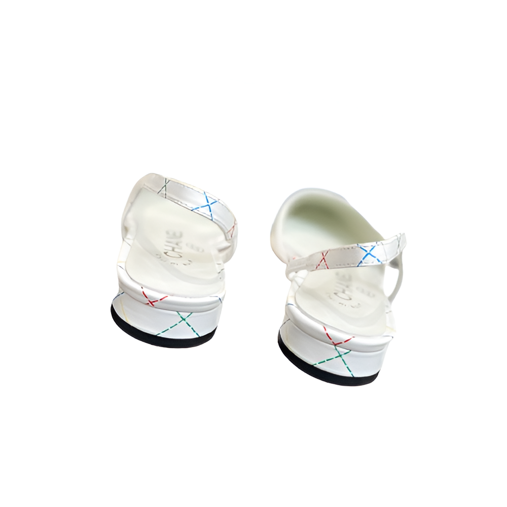Embrace elegance with the CHANEL Women's Slingback Flats, designed to deliver both style and comfort. These flats showcase a sleek black toe cap and a delicate white patterned design, perfect for adding a chic touch to any outfit. The adjustable slingback strap ensures a secure and personalized fit, making them ideal for all-day wear.