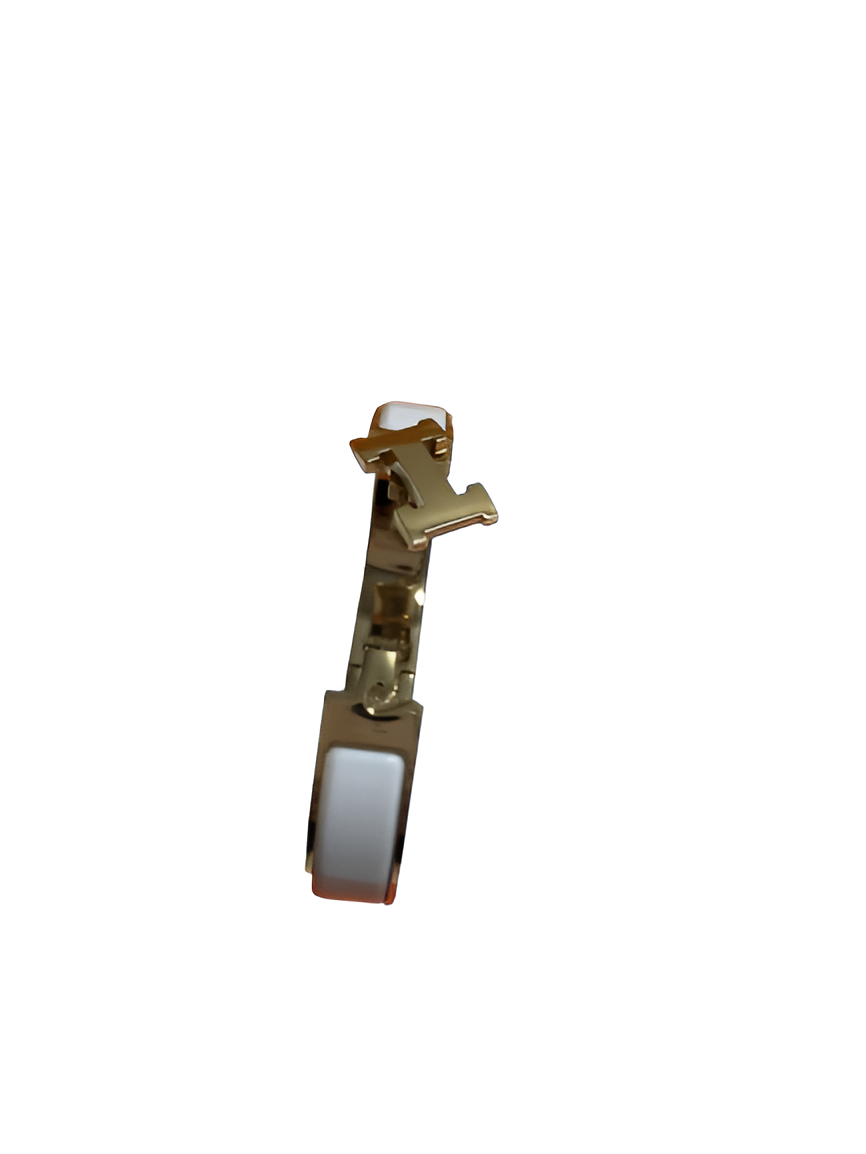 Elevate your accessory collection with the sleek and refined HERMES Slim Enamel Bangle Bracelet, designed exclusively for women. This luxurious bangle features a polished gold-tone finish with a smooth white enamel accent, creating a timeless and chic look. Perfect for any occasion, this bracelet adds a subtle touch of sophistication to any outfit. Packaged in a premium HERMES branded box, it makes an excellent gift or a stylish addition to your collection.