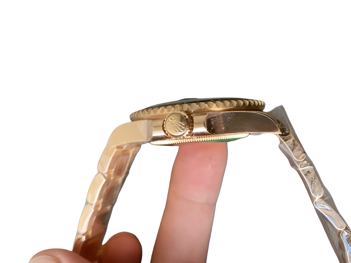 This Rolex GMT-Master II features a stunning combination of Everose gold and a black dial, giving it a bold and luxurious look. The 24-hour rotatable bezel is designed in a two-tone black and brown ceramic, allowing you to track multiple time zones. The luminescent hour markers and hands ensure readability even in low light. The Everose gold Oyster bracelet adds an elegant touch to this sporty timepiece, making it both durable and stylish.
